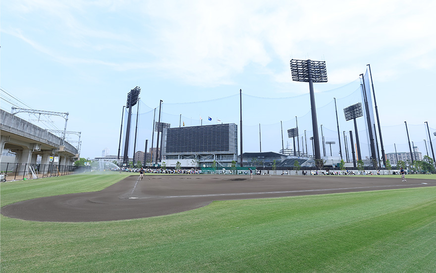 内野部分(黒土)があるサブグラウンドで、阪神タイガースの選手が練習で使用します。公園の周遊ルートから、練習の様子を間近で観ることができます。